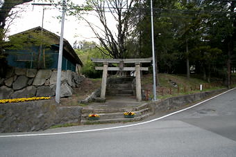 亀沢の船石の向かいに、東向きに境内入口があり、石鳥居が建っている。