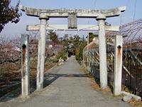 境内の南に鳥居が立ち、ブドウ畑にはさまれた参道を歩く。