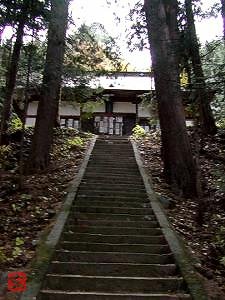 木立の中の参道の階段を上ると、社殿。