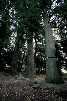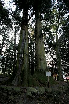 境内奥の二柱の杉(父母)は、縁結びの杉。