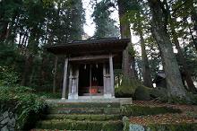奥で廻り合い、二人で杉の間を通り抜けて参拝すると
