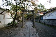 参道を進むと鳥居が建っており