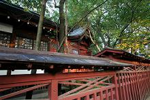 拝殿の後方に朱の垣があり、
