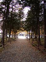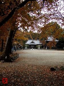 入口には黒褐色の鳥居があり、木のトンネルを抜けると、晩秋の境内。