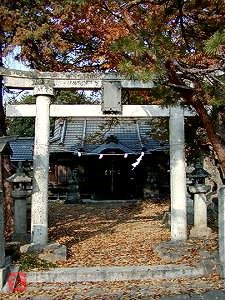 本殿は唐破風桧皮葺、江戸初期の建築、拝殿は 明治四十年改築し、規模大ならずと雖も宮殿の形 体に於いては欠くる所なく自から神威の尊さを仰 明治四年当地に奉遷し、一月十四、十五日はお蚕 の神様として近郷に知られた大きな祭であるが、 近年は寧ろ交通安全の御神徳が大である。また昭 和五十七年天神社を境内に遷祀し、家内安全、果 実の豊作、交通安全、学問の向上等信仰が篤い。 −社前案内板− |