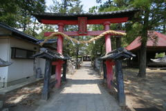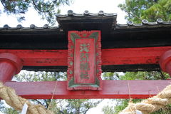 境内に入ると稚児柱が黒い、朱の両部鳥居があり。鳥居扁額には「浅間神社」とある。