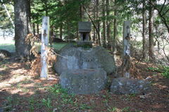 参道入口付近の左手に、岩の上に石祠が祀られており、