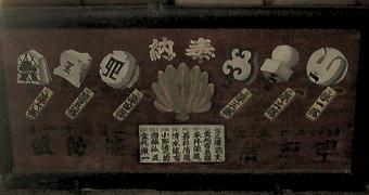 天狗神社の名の通り、神紋は羽団扇。天狗の持物だ。