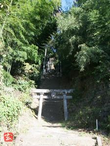 少し進むと鳥居があるが、鳥居の奥は頂上まで続いた300段以上もある長い階段。