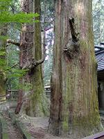 階段を上って、中門の前を見ると、タワラ杉が立派。