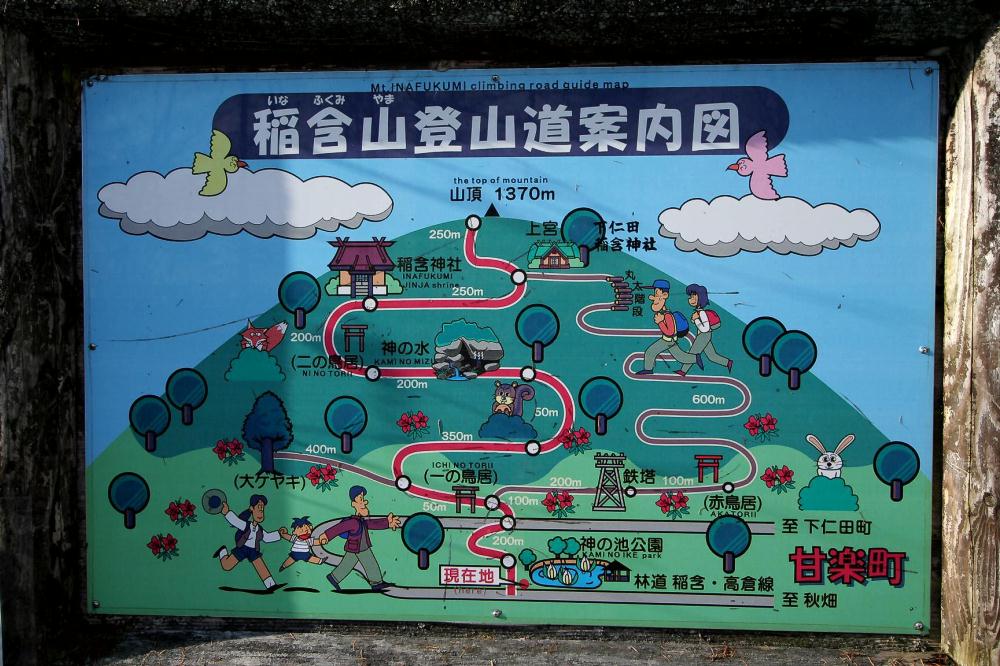 登山道は一の鳥居付近で左右に分岐し、山頂付近で合流する。