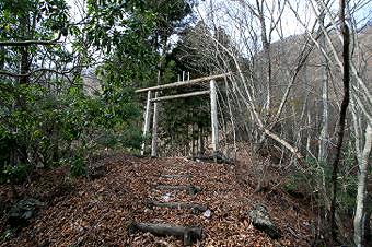 二の鳥居から、狭い山道をウネウネと登って行くと、