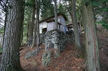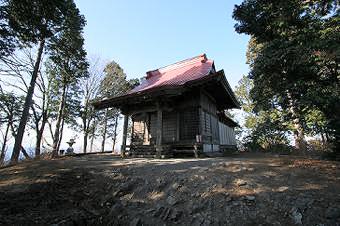 山頂の少し下、下仁田町側と甘楽町側に二つの稲含神社社殿がある。