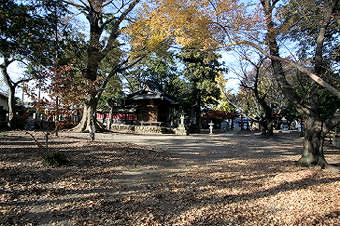 西に傾いた秋の日射しが射し込んで、境内は影で斑になっており