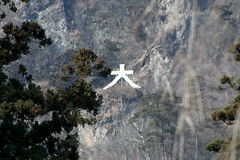 目の前に聳える白雲山の中腹に「大」の文字が見えてくる。