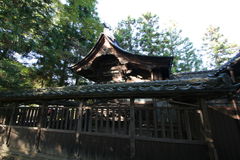 拝殿後方に、垣に囲まれて銅板葺流造の本殿。