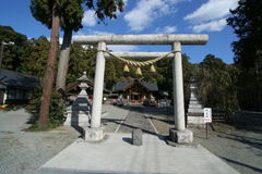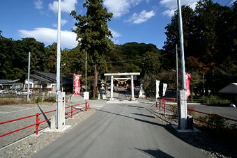 338号線から、緩やかに下る参道があり、境内入口には石造の神明鳥居。