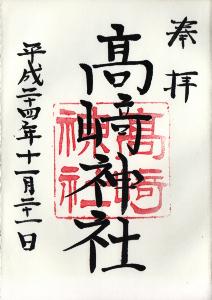 【 高崎神社 (高崎市) ・朱印 】