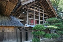 後方の本殿は覆屋根の下にあり、流造のようだ。