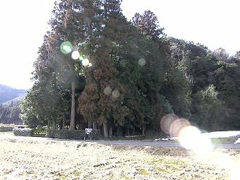 道の右手(西側)に境内の杜がある。