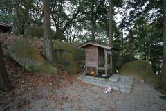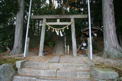 境内の鳥居から階段を上ると、階段途中の右手に岩に囲まれた境内社が一つ。