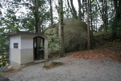 境内左手にトイレがあるが、その脇にも大岩。