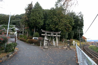 JR線路のすぐ北側に境内がある。