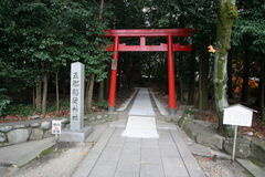 参道を進み鳥居をくぐると、右手に赤い鳥居。