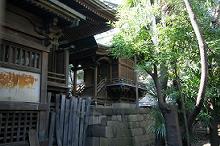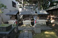 境内の左手、社殿と目黒川の間に境内社が三社並んでいる。