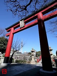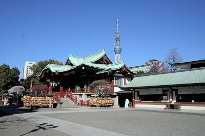 錦糸町駅と亀戸駅の中間。JR線路から500m北の亀戸に鎮座。