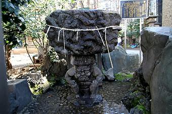 鳥居脇に力士手水鉢 |