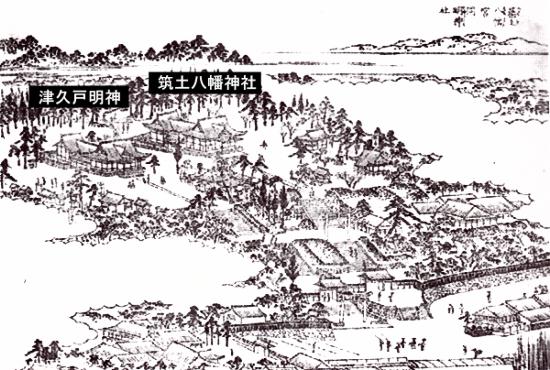 最初は血首明神と称されていたが、「津久戸」へ変化したとも。