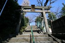 階段を上ると社殿のある境内で、通常の鳥居が階段途中にある。