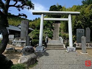 鳥居の右奥に、当社祭神・三森治右衞門光豊の墓があるのだが
