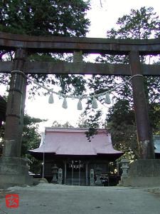 社号標と鳥居 ![]() | 参道階段 ![]() | 鳥居横におとなしい犬 ![]() |