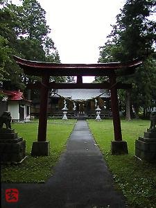 う大己貴命(大国主神=大黒さま)である。律令国家当時は、神階を授かり幣帛をあずかる官社と して保護が厚く、「延喜式」の神名帳に記されている神社で ある。(陸奥国百座内 岩手県十四座) とりわけ前九年、後三年の役のあと亘理権大夫藤原経清 と安倍頼時の娘との間に生れた藤原清衡公は、篤くこの 神を尊崇し、豊田城を構えた際当神社の御社殿を修築し、 天下泰平武運長久祈願のしるしとし、荘園十町歩を献奉、 宝庫を建立、武具一式を奉納せしが、のち兵火で炎上し たと伝えられる。 その後、時経りて天明五年秋、三河の国の国学者菅江 真澄が当神社にぬさたいまつらんと訪れ、今当神社の御 神歌と奉る「かしこしな あらふるとても ぬさとらは こころしつぬの 岡の神籠」は、真澄遊覧記「委波氐廼 夜座」に記されている。 明和五年御社殿修築、天保六年再建奉遷、明治六年村 社に列格され、その後、御神威を仰ぐ県内外の氏子崇敬 者崇信の誠を捧げし寄進をもって、境内を拡張整備、昭 和二十年十一月八日郷社に列せられる。 −境内案内板− |
