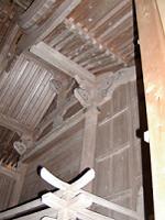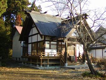 明治六年郷社となる。社殿は江戸時代中期宝暦十年(一七六〇) に神主斎藤能登守の時に新築造営された。 本殿は流れ造りこけら葺きで小屋組柱露出吹 放の覆屋(雨屋)がかけられている。 拝殿は入母屋造萱葺、長床は寄棟造萱葺で 大正十三年に再建された。 −社前の案内板より− |