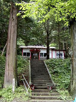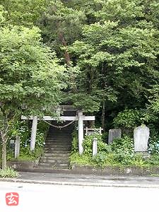 て魚をとりあげる狐の話の舞台でした。−社前案内− |