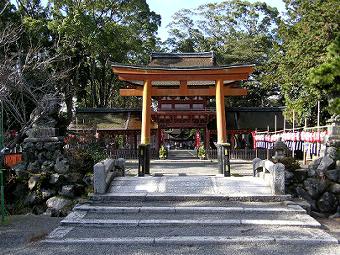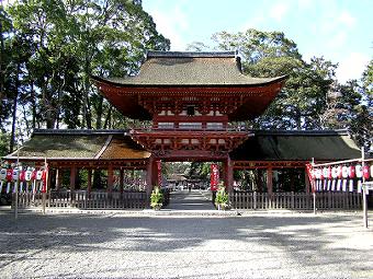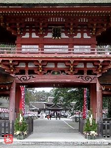 更に、朱の楼門をくぐり、砂利の参道を歩くと、