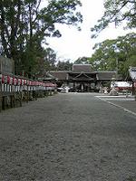 中学校の隣に大きな境内があり、国指定名勝の庭園もある大社。