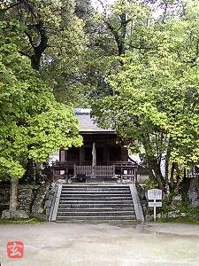 である。当本殿は、整った側面の屋根が特に美しい。 棟札によって南北朝時代の建徳元年(1370)の建 立であることがわかる。 重要文化財指定 −社頭案内より− |