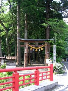 川の向こうに六所神社の鳥居が見える。