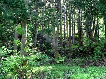 林の中に石垣跡などがあった |