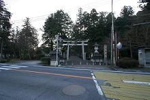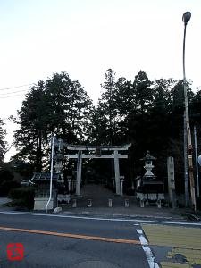 道路に面して北西向きに、境内入口の鳥居が建っている。