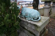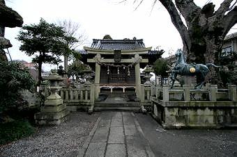 参道を進むと、牛像や神馬像があり、