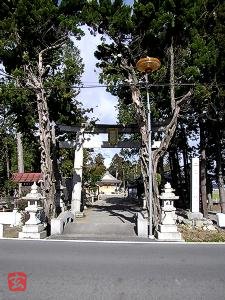 小学校の前、道を挟んで、南西向きに境内入口がある。