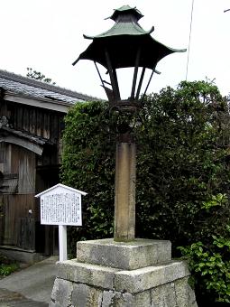 参道に松の木と硝子燈(しょうしとう)。