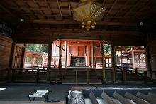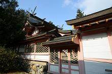 本殿の周囲に透垣があり、右手に門が設置されている。