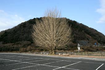 鳥居の前で右手に下ると、大きな駐車場がある。