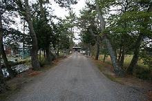 道の北側に参道入口の鳥居が見える。